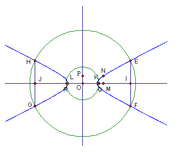 (8)以O為圓心,PK為半徑畫圓交直線IJ於兩點Q、R。即為雙曲線的兩個焦點。