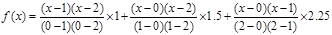 設多項式函數y = f (x)的圖形通過(0,1)、(1,1.5)、(2, 2.25),試求出滿足此